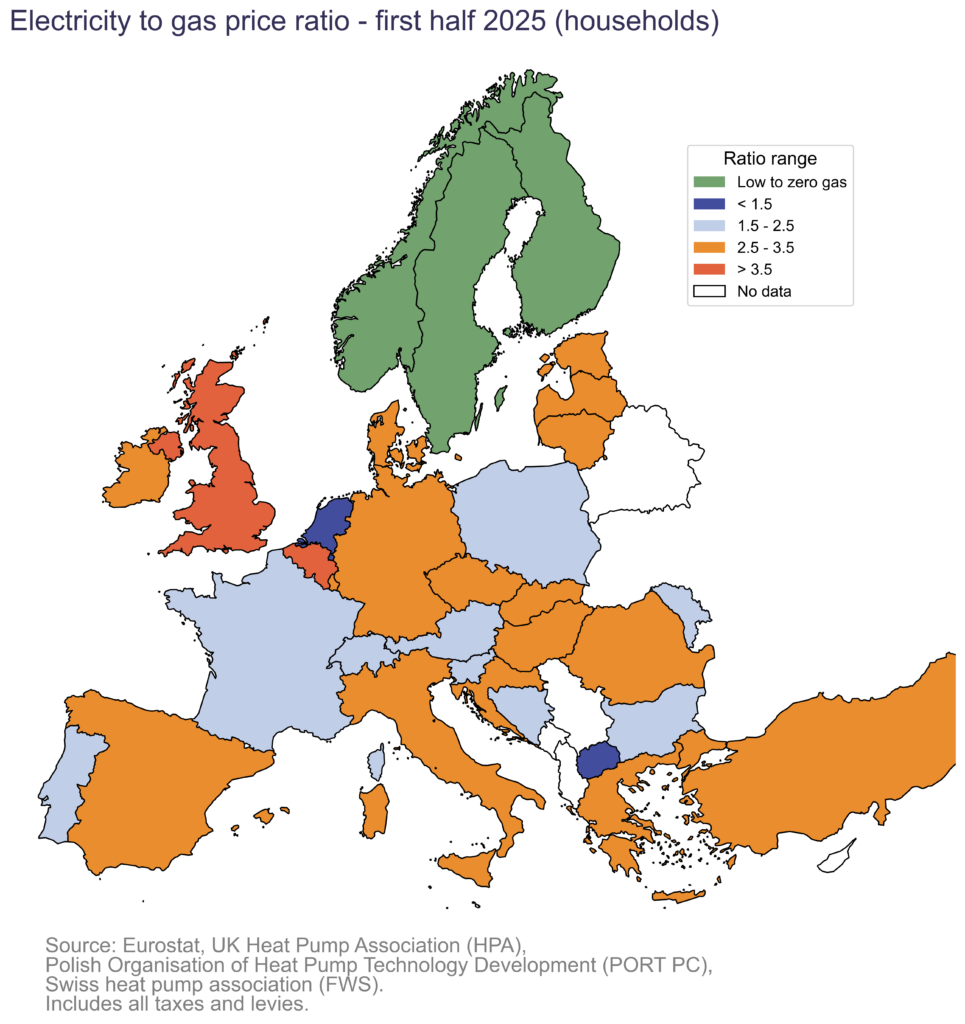 We recently published a report that showed countries which tax electricity more heavily than gas see slower adoption of heat pumps and remain more dependent on fossil fuels.